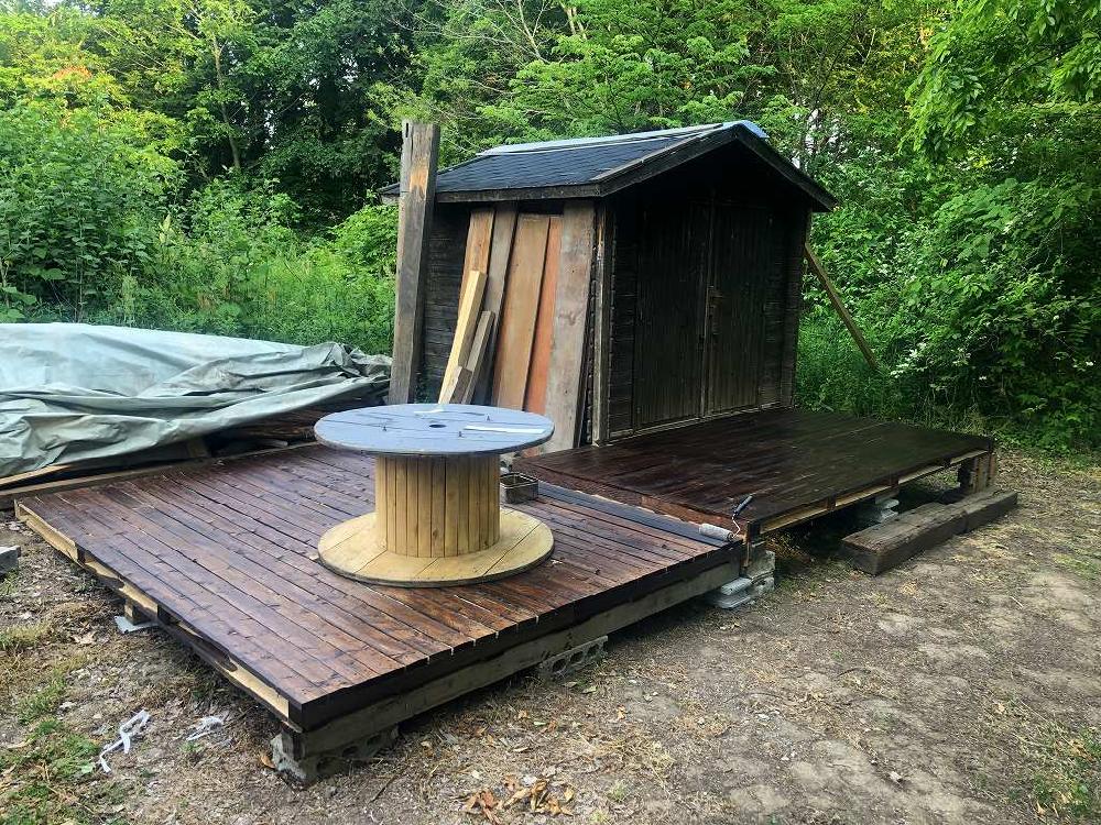 如月の森にログハウス(倉庫)が建ち、ウッドデッキもできましたので醤油鍋・もつ鍋パーをしながらキャンプしてきました。